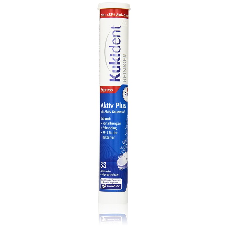 - Box contents: 1 x pack of 33 Kukident Active Plus dentures cleaning tablets