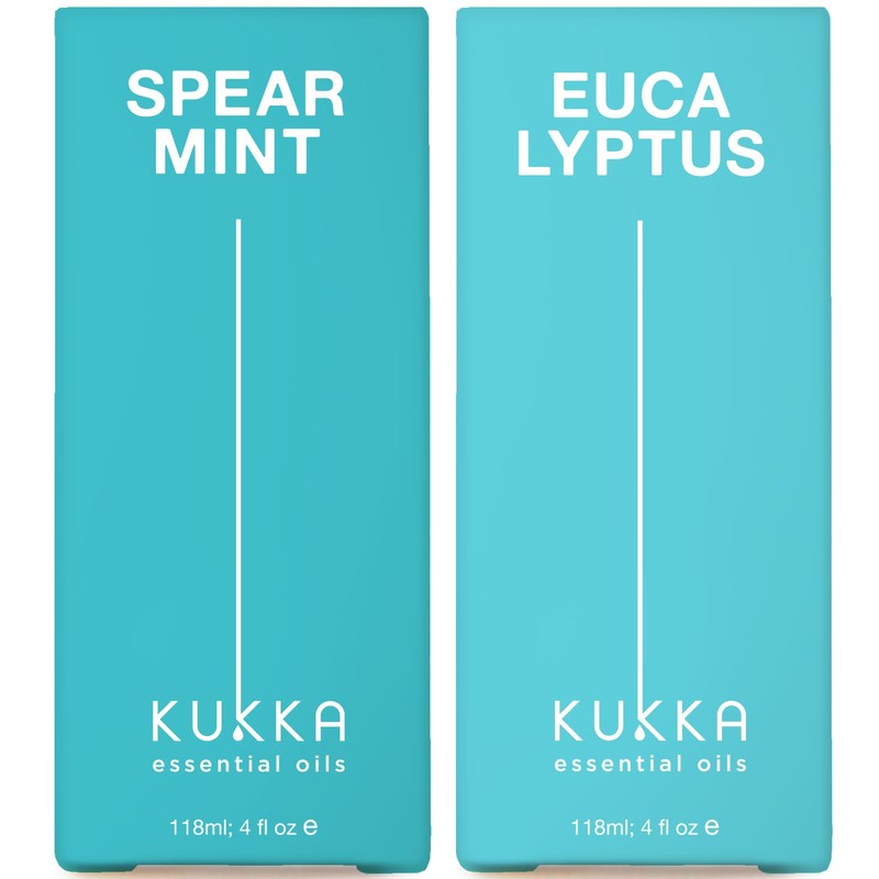 KUKKA essential oils Spearmint Essential Oil for Diffuser & Eucalyptus Essential Oil for Diffuser Set - 100% Natural Aromatherapy Grade Essential Oils Set - 2x4 fl oz - Kukka