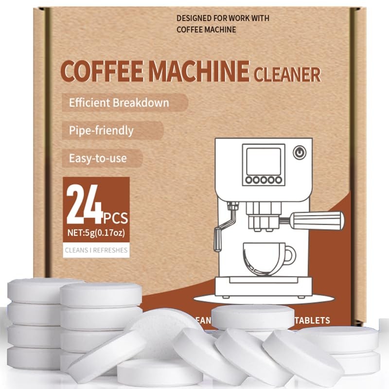 Keep your coffee maker performing at its best with these professional-grade cleaning tablets. Designed to work with all coffee machine models, these tablets effectively remove coffee oils, residue, and mineral deposits that can affect the taste of your brew. Each box contains 24 tablets for multiple cleaning cycles throughout the year. Regular use helps maintain optimal brewing temperature, ensures consistent coffee flavor, and extends the life of your machine. Simply follow your coffee maker's cleaning cycle instructions with these tablets to restore like-new performance. Perfect for both home and office coffee makers, these cleaning tablets help prevent clogging and ensure every cup tastes fresh and delicious. For best results, use as part of your regular maintenance routine to keep your coffee maker running efficiently.