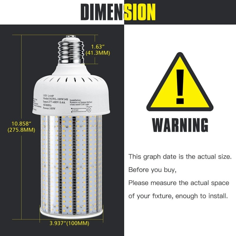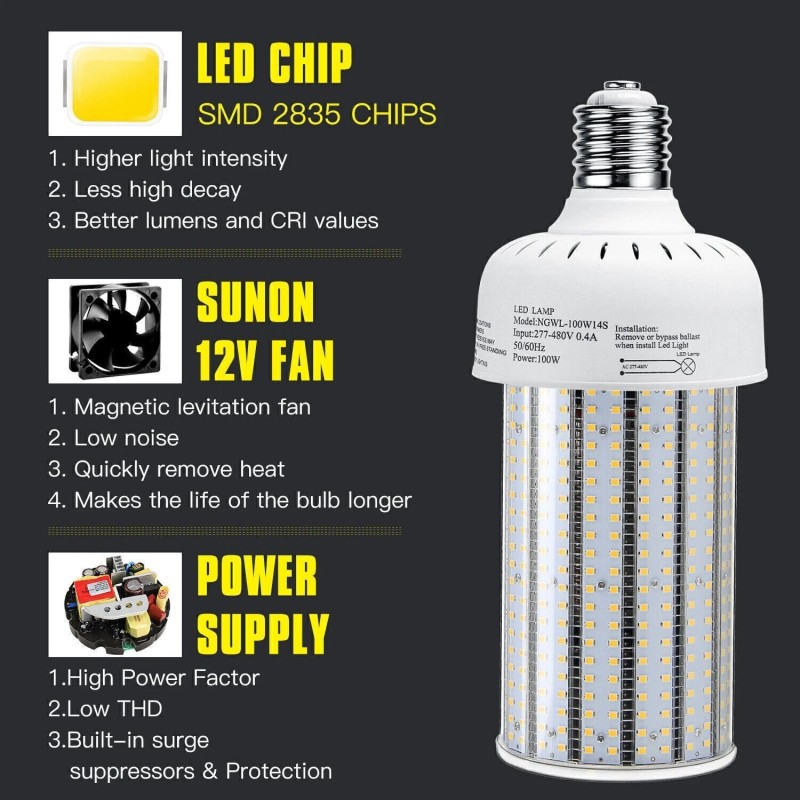 KUKUPPO 100W LED Corn Bulb E39 Mogul Base 5000K Cool White AC480V For Warehouse Light