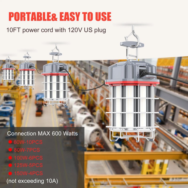 Ultra Bright & Energy Saving】AC100-277V 5000K Daylight hanging work light provide high-efficiency lighting of 22,500 lumen offer full 360°beam to light up every corner. Replacement for 400W incandescent bulb can reduce electricity bills by up to 90%.