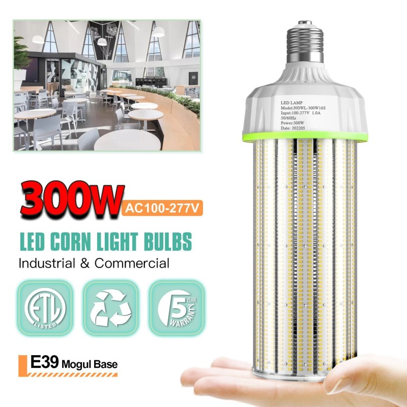 KUKUPPO 300W LED Corn light Bulb Commercial Warehouse Lamp- 45000Lumens - Mogul E39 Base
