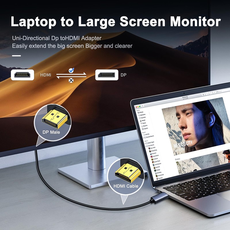 - Wide CompatibilityThe HDMI male to DisplayPort male adapter only supports connecting video source from HDMI port to display device on DP port,Like PC, desktop, graphics card, laptop, ultrabook, Raspberry Pi, MacBook Pro, Mac Mini, PS 5/4/3, Xbox One/ 360, Chromebook, TV Box, and other devices with HDMI output ports