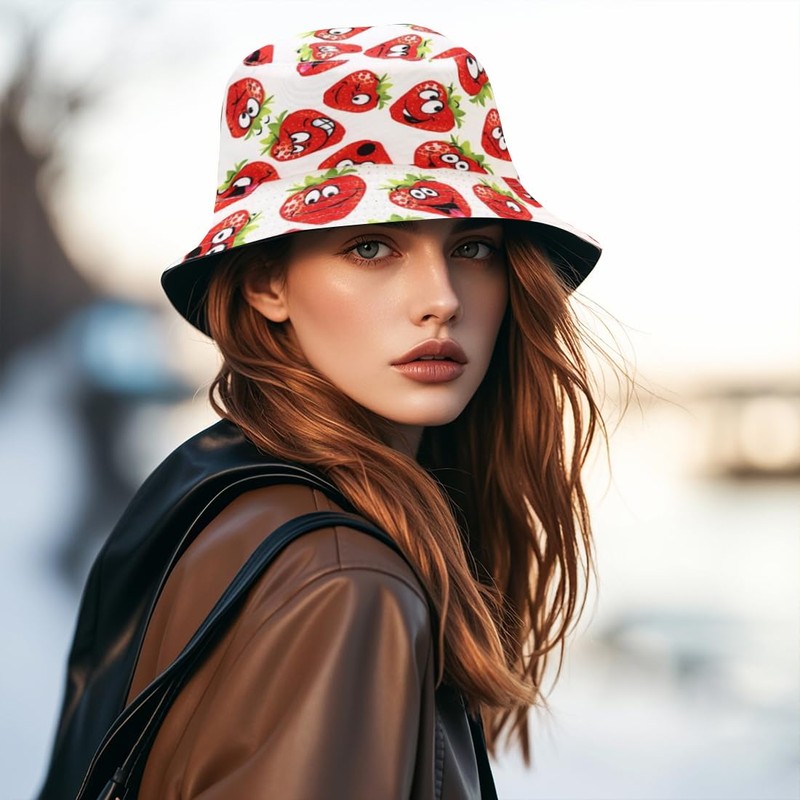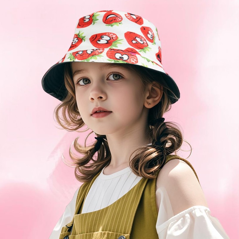KUMSODE Men Women Outdoor Hat Fishing Hat Summer Fishing Hats Strawberry Hat Bucket Hat UV Protection Hat Girls Children