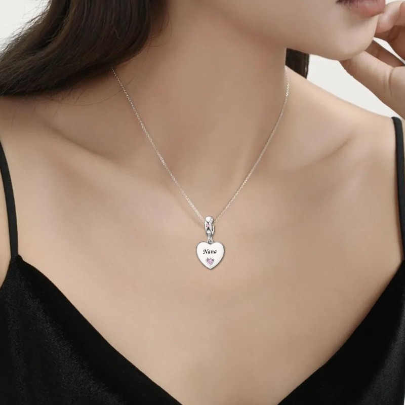 KunBead 18 inch Nana Mother Daughter Pink Heart I Love You Birthday Charm Pendant Matching Necklace for Women set for 3