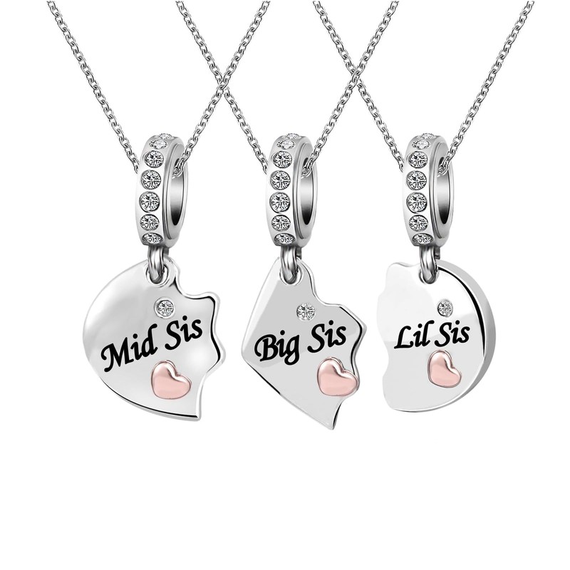 KunBead Big Sister Middle Sister Little Sister Rose Gold Tone Matching Puzzle Heart Charm Birthday Pendant Necklaces set for 3