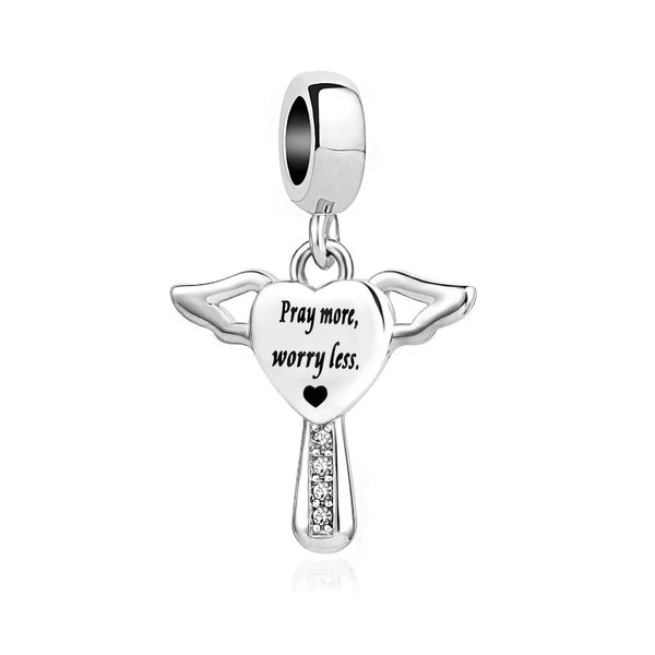 KunBead Jewelry Cross Charms Holy Bible Guardian Angel Wing Heart Love Religious Charm for Bracelet