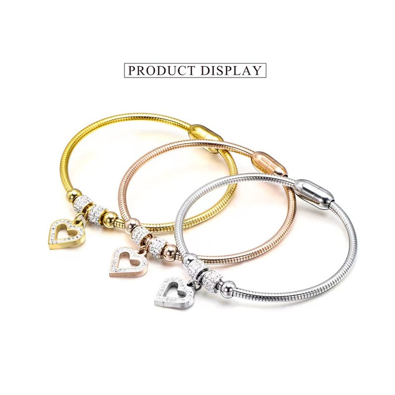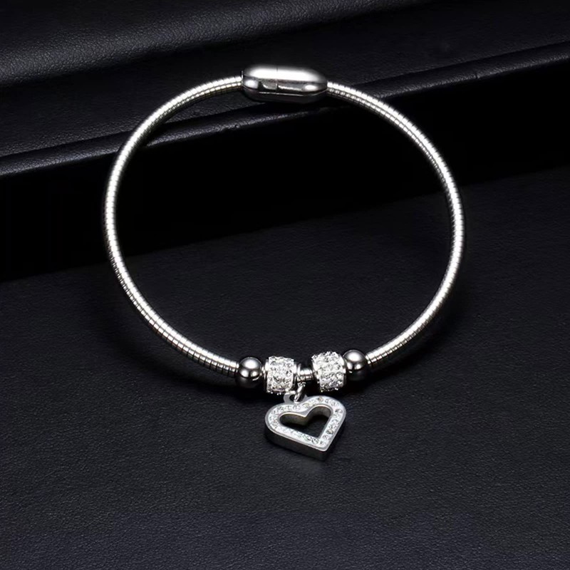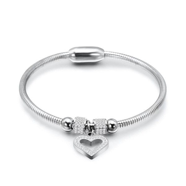 KunBead Jewelry Silver Heart Charm Birthday Bracelet Stainless Steel Love Bangle Cuff Jewellery Bracelets for Women