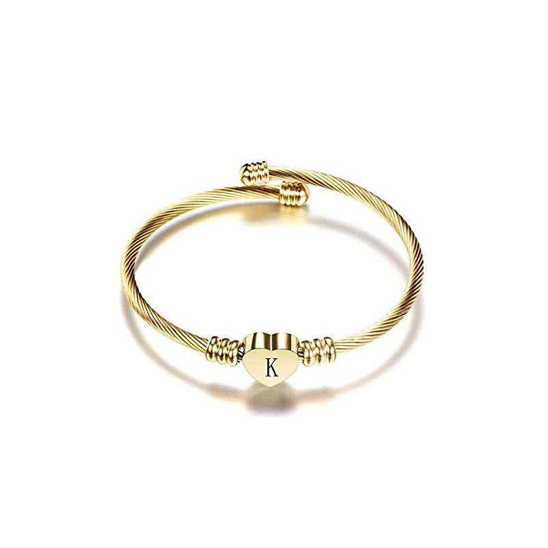 KunBead Jewelry Women Girls Auntie Initial Letter K Cuff Bracelet Gold Alphabet Heart Bangle Bracelets Gift for Birthday