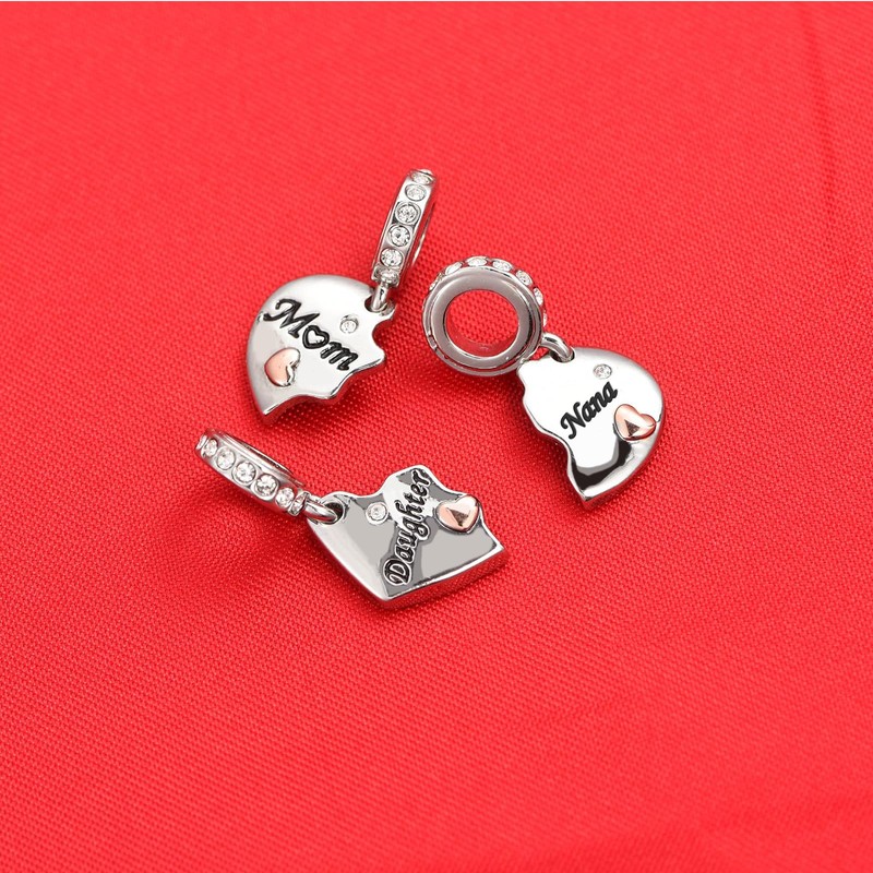 KunBead Nana Mum Mother Daughter Rose Gold Tone Matching Puzzle Heart Charm Birthday Pendant Necklaces set for 3 for Grandma Granddaughter