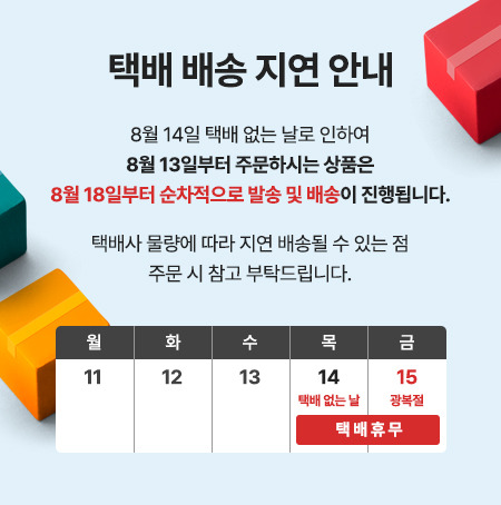 본 제품을 구매하시면 원활한 배송을 위해 꼭 필요한 고객님의 개인정보를 (성함, 주소, 전화번호 등) 택배사 및 제 3업체에서 이용하는 것에 동의하시는 것으로 간주됩니다.