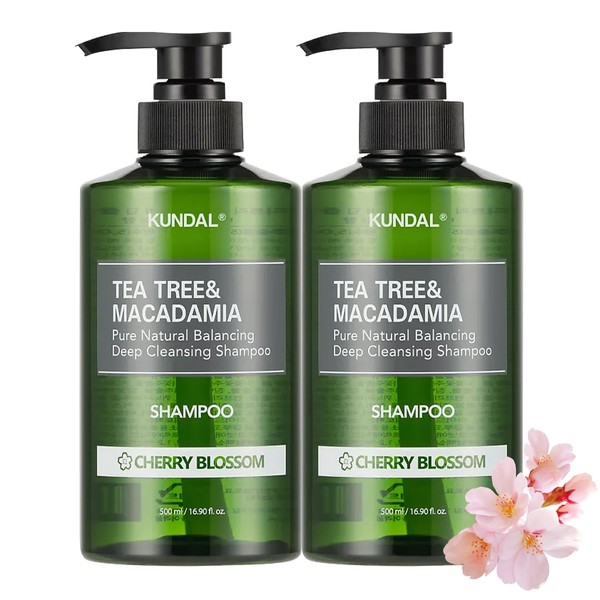 Kundal Tea Tree extract Deep Cleansing Hair Shampoo [Cherry Blossom] Purifying, Plant based ingredients, pH balancing and nourishing healthy scalp care 1,000ml(16.9 Fl oz x 2ea)