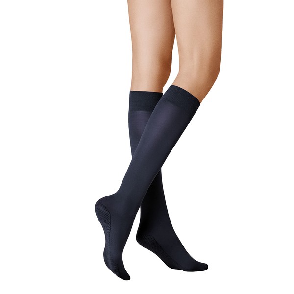 Kunert knee-high stockings "Warm up 60" made of using innovative fibers and knitting technology ensures warm legs. High insulation and climate balancing effect. Speical fibers at the foot area for warming effect. 60 DEN. 84% polyamide, 9% cotton, 4% elastane, 3% polyacrylic. 30 °C wash.