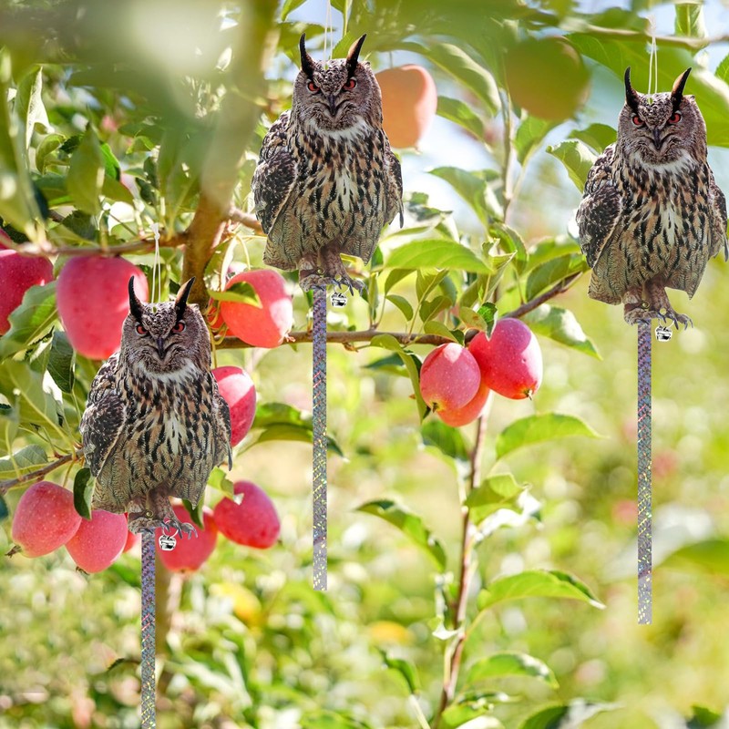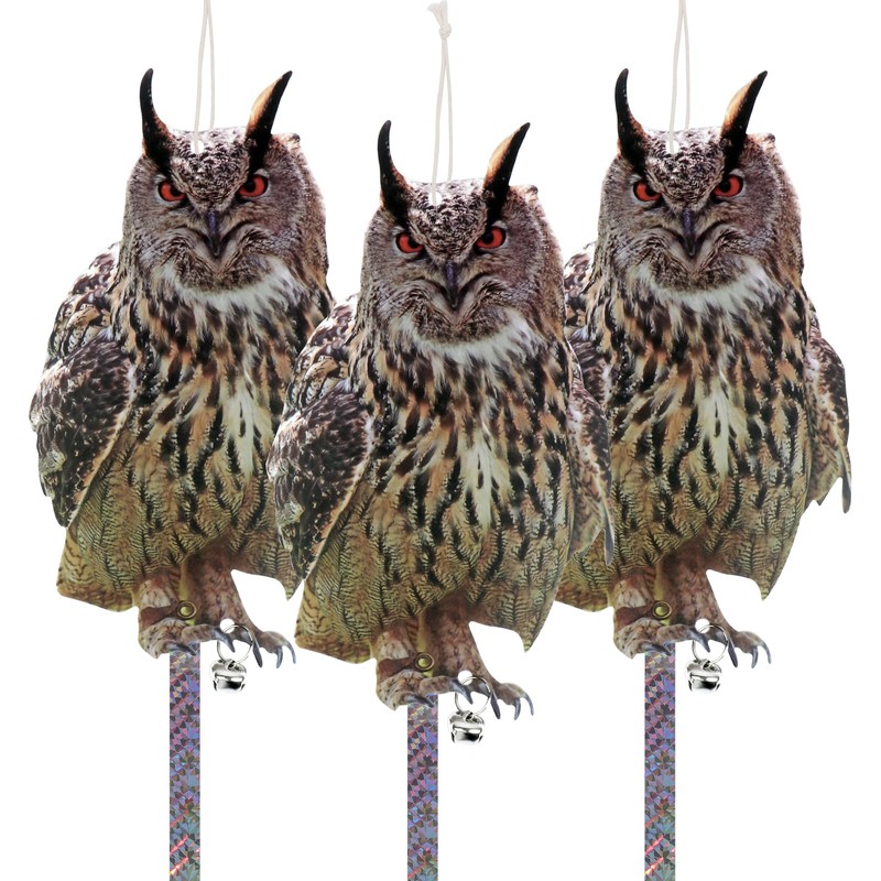 - Typical Owl Design: The owl design can help you scare birds away effectively. The reflective tape and bells can easily Scare birds and pigeons away from your garden, patio, yard and garage.