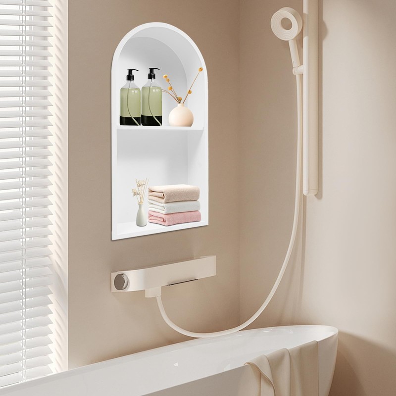 kunghei 304 Stainless Steel Arch Shower Niche 12" X 24", White No Tile Needed Recessed Wall Niche Shower Double Shelves Organizer Bedroom Kitchen Bathroom Niche Shower Wall Storage