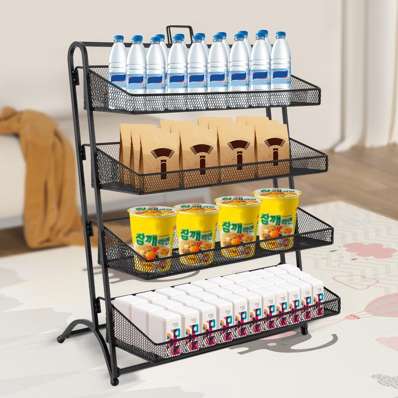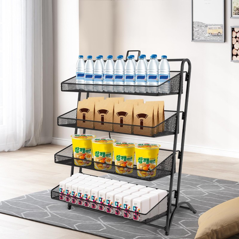 - Use: It can be used in stores, homes or parties to organize snacks and candies, and can also be used in supermarkets or kitchens to organize kitchen supplies such as condiments. It can also be used as a countertop display rack in a bakery, a fruit display rack in a fruit store, and various retail and home uses for storage. Counter Grocery Display Rack.
