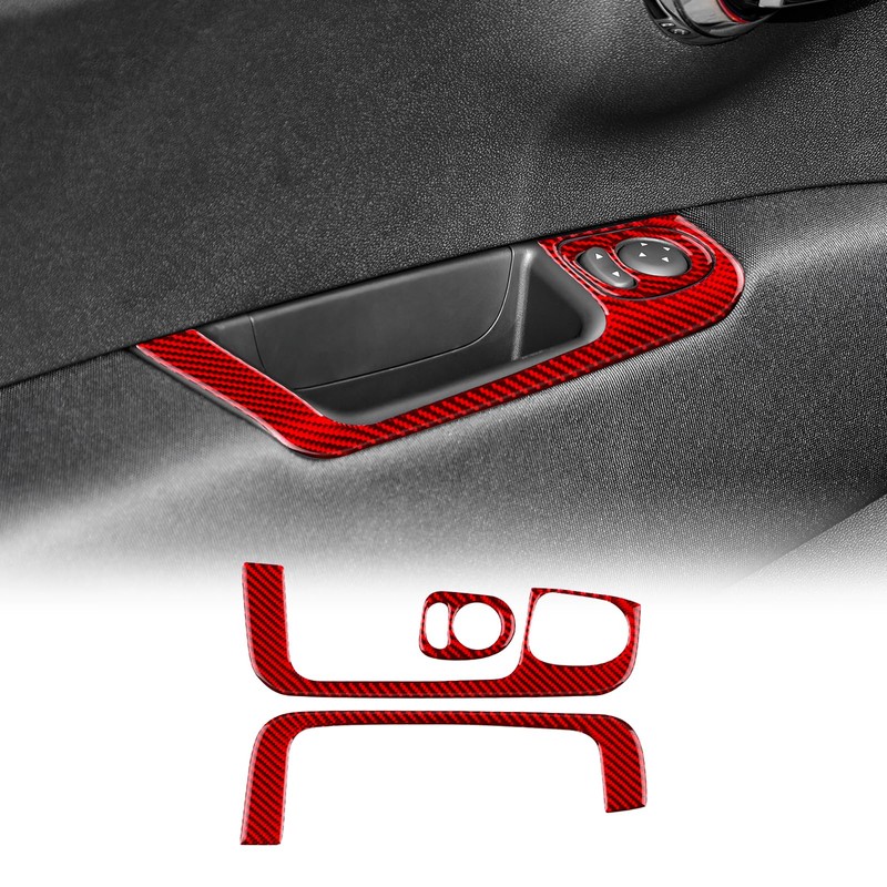 KUNGKIC For Fiat 500 2008-2023 Abarth 595/595C 2012-2023 695 2017-2023 Interior Door Car Control Panel Window Glass Lifting Switch Console Cover Carbon Fiber Indoor Accessories Gift (Red)