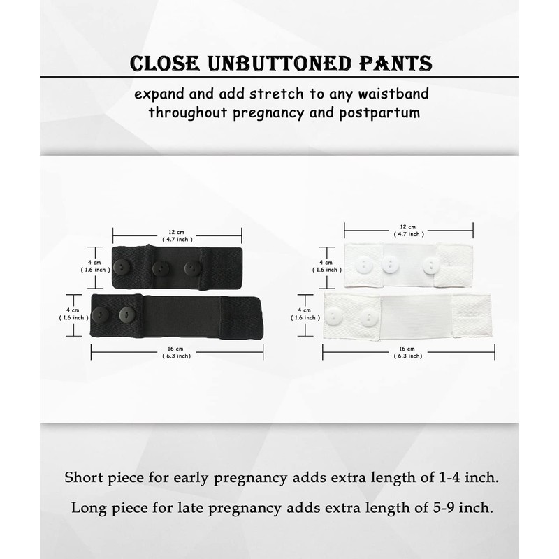 - 【4 PC of ADJUSTABLE PANTS WAIST EXTENDERS】wear this maternity pants extenders to close unbuttoned pants, jeans and skirts, hold pants up. A stylish, functional, and comfortable way to temporarily transform your pre-pregnancy pants into maternity clothes.