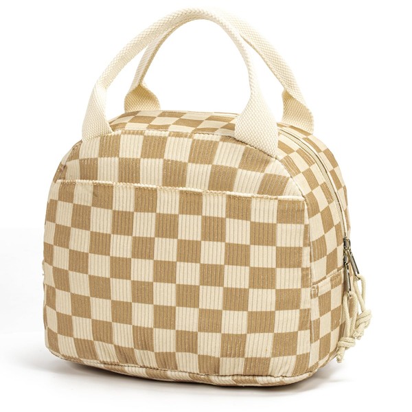 Kunoli Lunch Bags for Women, Insulated Lunch Bag, Reusable Corduroy Lunch Box Cooler Tote Bags, Leakproof Womens Lunch Bag for Work School Travel (Check)
