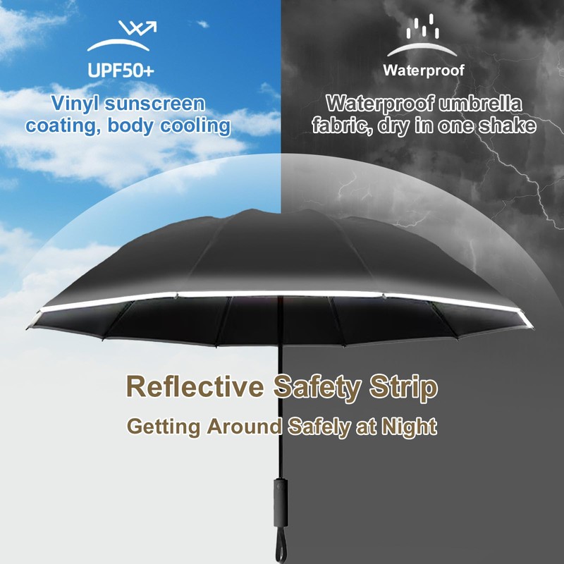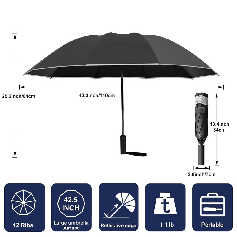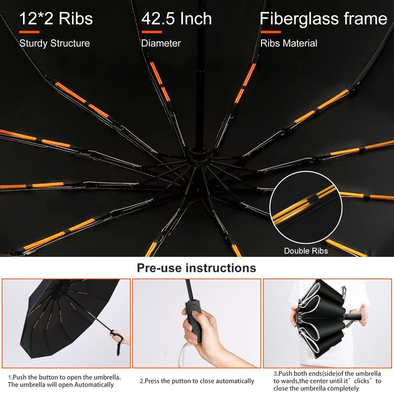 - Effortless Automatic Open/Close: With a simple press of a button, our folding umbrella opens and closes automatically in seconds. No more fumbling with wet umbrellas when entering cars or buildings—stay dry and stylish with this convenient feature that makes rainy days a breeze!