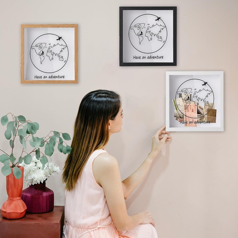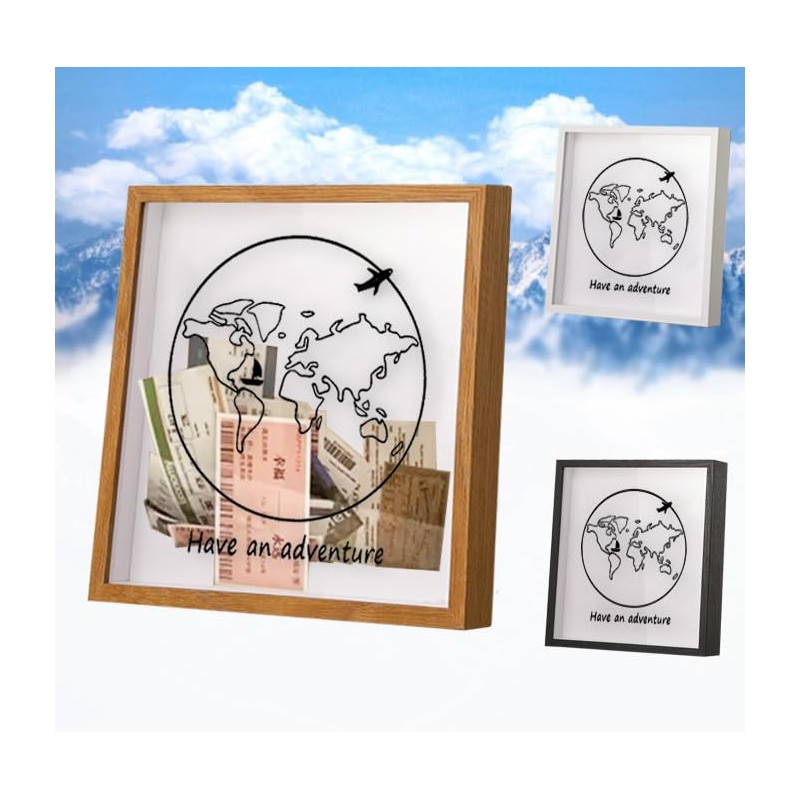 - Product Size: Travel box is 12 inches long, 1.77 inches thick, top slot size: 5.5 inches x 0.4 inches, there are three different colors of travel photo frames to choose from: white, black, and wood, you can choose according to your own preferences, to create a one-of-a-kind adventure souvenir box.