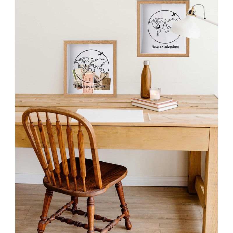 Kunstlhua Adventure Travel Shadow Box with Slot,12x12 Adventure Archive Box with Slot, Large Shadow Boxes Frame Memory Box for Keepsakes, Tickets, Awards, and Photos (Natural Wood)