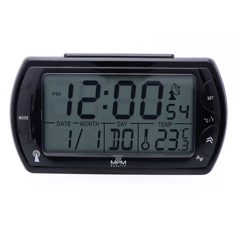 Kunststoffwecker MPM - Wecker, Wiederholungsalarm, Funkgesteuert, Licht, Thermometer, Datum/Tag, Wecker für Haushalt, Schlafzimmer, Bürowecker, 2X AAA Mikrobleistiftbatterie, 120 x 64 x 40 mm