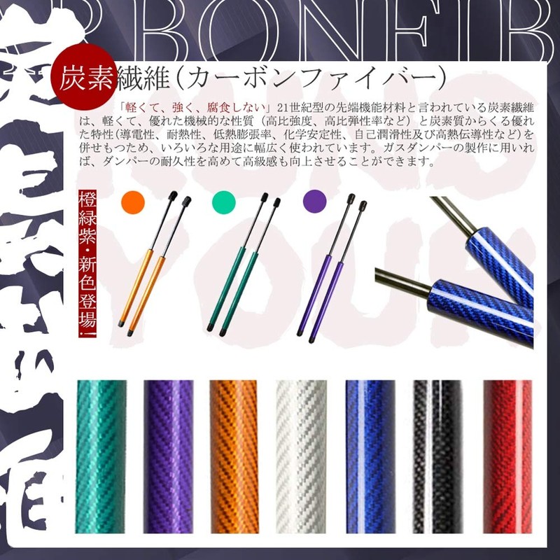 Lightweight, strong and corrosion resistant: Carbon fiber is said to be a 21st century advanced functional material (carbon fiber) is lightweight, and has excellent mechanical properties (high ratio strength, high ratio elasticity, etc.), and has excellent characteristics of carbon (conductivity, heat resistance, low thermal expansion rate, chemical stability, self-lubricating, and high thermal conductivity). When used to make a gas damper, the damper can be made more durable and luxurious.