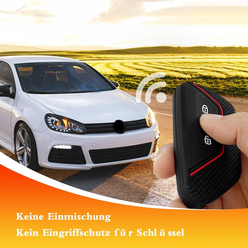 Autoschlssel Hlle - Unser VW Schlsselhlle aus Silikon ist speziell fr den VW Golf 8 konzipiert. Bitte achten Sie vor dem Kauf auf die Form des Schlssels. Es ist ein ideales Zubeh?r fr Ihren Autoschlssel und bietet einen umfassenden Schutz. Die Hlle ist flexibel und passt sich Ihrem Autoschlssel perfekt an. Die rutschfeste Oberfl?che sorgt dafr, dass der Schlssel nicht aus Ihrer Hand rutscht.Unsere Schlsselhlle ist kompatibel mit einer Vielzahl von Modellen, darunter VW Golf 8, Seat Leon MK 4 / KL, Tarraco, Ateca (2020), Skoda Octavia (2020), Enyaq, Enyaq iV 60, Cupra Formentor und Leon (2020). Sie ist ein Leichtgewicht unter den Schlsselhllen und liegt daher super in der Hand.Die Schlsselhlle ist aus hochwertigem Silikon hergestellt, das sowohl langlebig als auch widerstandsf?hig gegen t?gliche Abnutzung ist. Sie bietet einen hervorragenden Schutz fr Ihren Autoschlssel und verhindert, dass der Schlssel aus Ihrer Hand rutscht.Unsere Schlsselhlle ist nicht nur ein praktisches Zubeh?r, sondern auch ein stilvolles Accessoire. Mit seiner strukturierten Oberfl?che und der leuchtenden Farbe ist es ein echter Hingucker. Es ist das perfekte Geschenk fr jeden VW Golf 8 Besitzer.Schlsselkappen, Schlsseletui, Schlsseltasche - egal wie Sie es nennen, unsere Schlsselhlle ist die perfekte L?sung fr den Schutz Ihres Autoschlssels. Sie ist leicht, handlich und langlebig. Mit unserer Schlsselhlle k?nnen Sie Ihren Autoschlssel stilvoll schtzen und gleichzeitig die Funktionalit?t beibehalten.