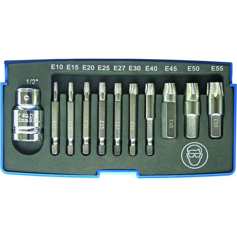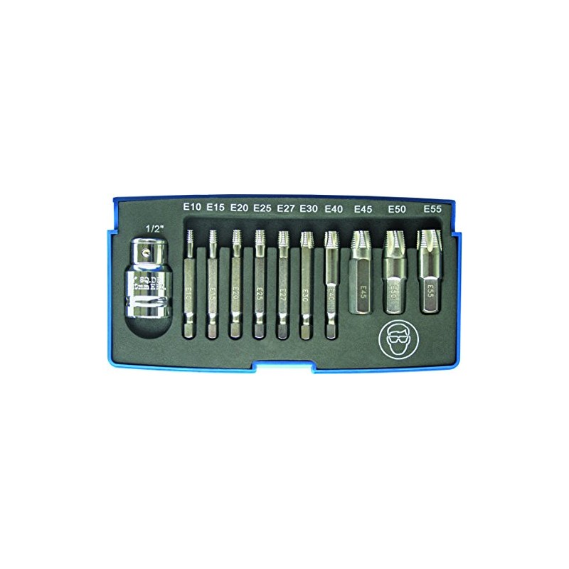 - Box contents: the set consists of the inserts E10, E15, E20, E25, E27, E30, E40 including 6 mm quick release socket and E45, E50 and E55 for the included 1/2 inch nut adapter 10 mm