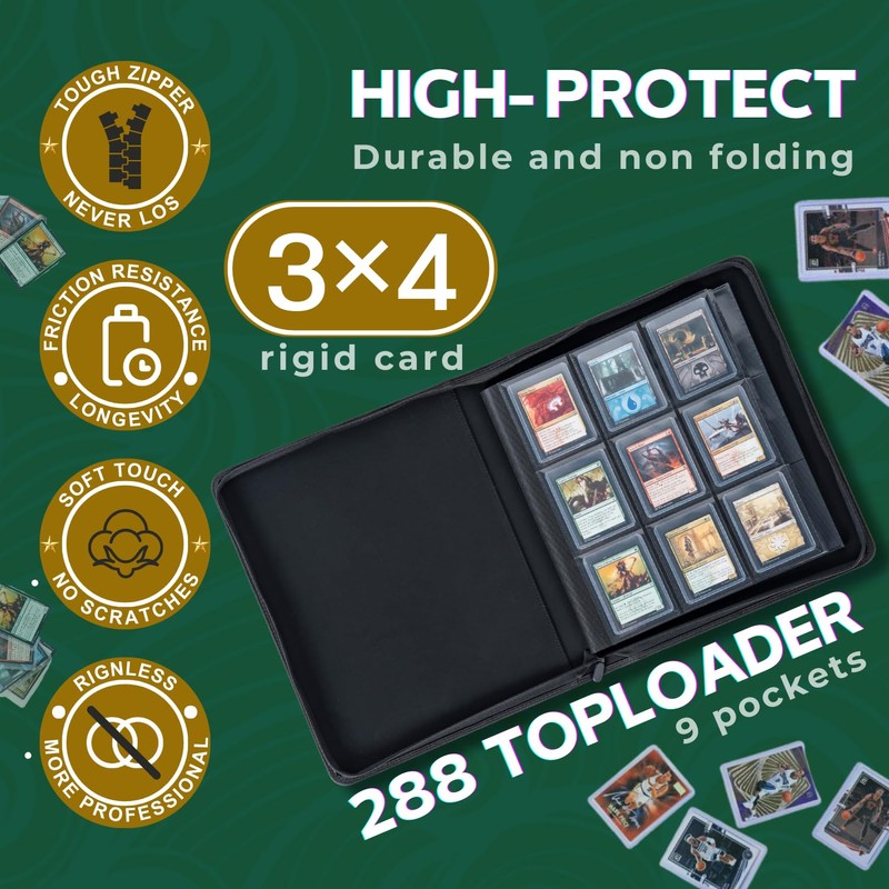 - Capacity and Convenience: With room for 288 cards, including 3✖4 inch toploaders, our binder has a scratch-resistant interior. Its fitted page size prevents card folding, and side-mounted sleeves simplify loading