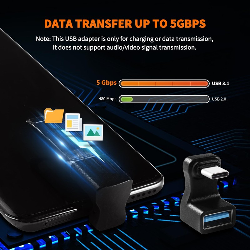 - Large Distance U-shaped angle: 5Gbps USB C to USB A adapter with widened U angle. U-shaped spacing 11mm, designed for game consoles. Place the USB cable on the back. Make room for the movement of your fingers so you can control the game.
