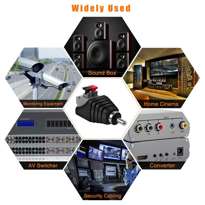 - Widely Used: Use for security wiring, monitoring equipment, home theater, background music, the converter output input devices such as AV audio and video interface connection, audio and video signal transmission.