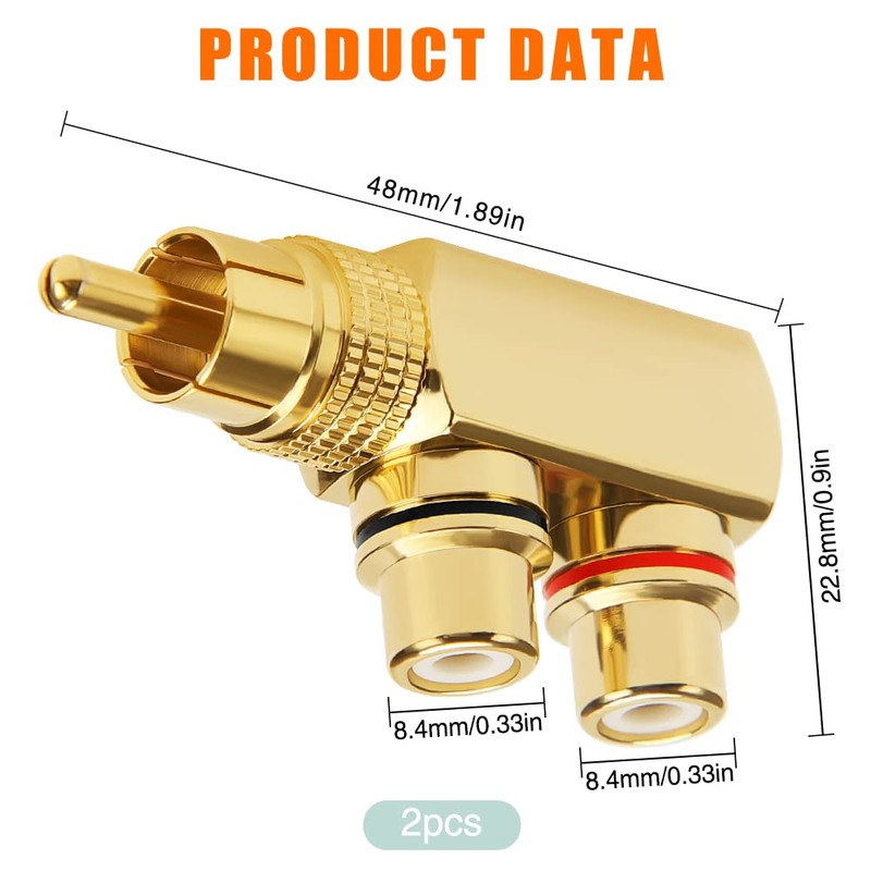 - Easy to Carry: RCA splitter adapter have unique F-shaped and 90 degree appearance which looks exquisite and small, you can easily be plugged in when required and take it anywhere.
