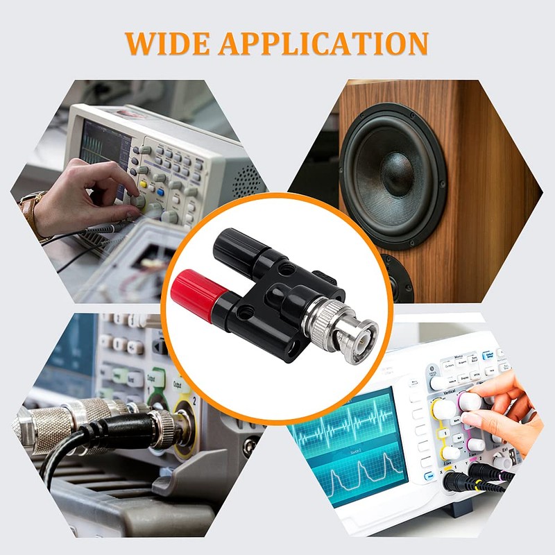 • CONVENIENT PERFORMANCE Terminals make it easy to connect test leads or additional components. Used to adapt a single BNC plug to 2 4mm banana sockets in red and black to provide insulation for a 4-terminal network. Signal is connected to red terminal.