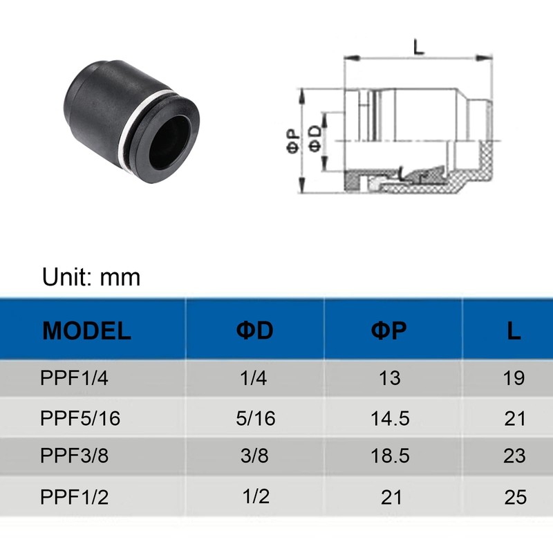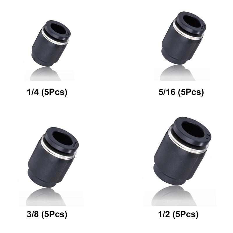 - 【Package List】There are 20pcs in one package, including 4 sizes pneumatic plugs - 1/4, 5/16, 3/8, 1/2, each size 5pcs. Applicable Tube: PU tube, Nylon tube , Soft PE tube.