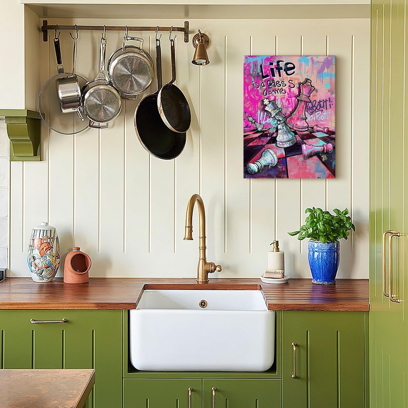 Kuphsod Chess Canvas Wall Art Graffiti Chess Print Painting Banksy Inspirational Quotes Picture Modern Home Artwork Decor For Living Room Kitchen Bathroom Framed Ready To Hang 12x16 Inch
