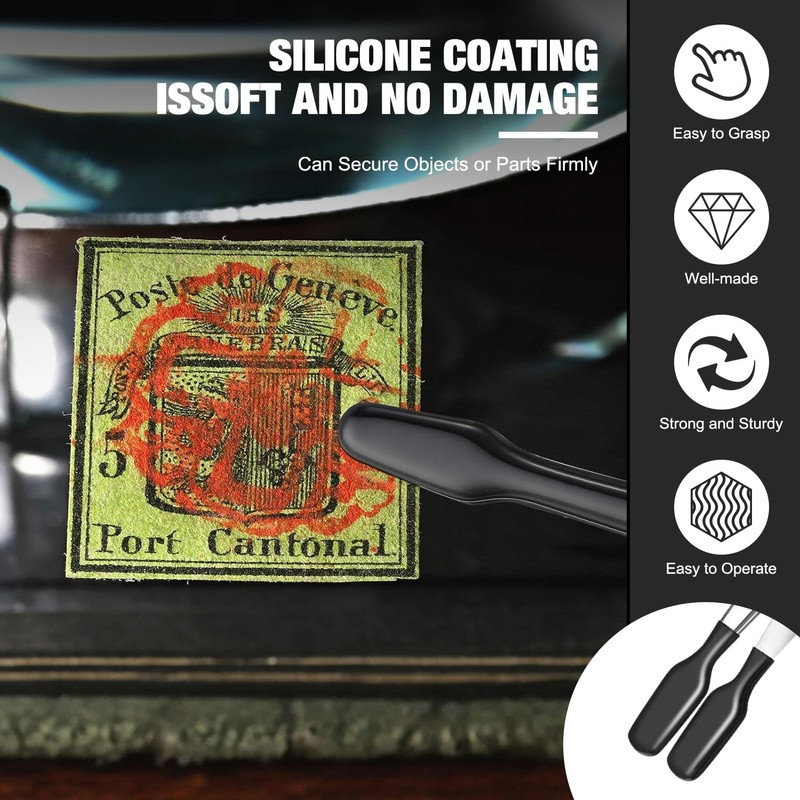 - PVC Rubber Coated Tips: Stainless steel tweezers have a PVC coating on the tips, which prevents items from being scratched by hard tweezers; it provides good protection, in addition, the rubber coating prevents slipping and doesn't allow items to slip off easily; suitable for small or irregularly shaped items.