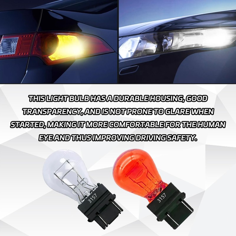 - 【Versatile Application】 This 3157 bulb perfectly replaces brake light bulbs, turn signal bulbs, tail light bulbs, reverse light bulbs, front and rear turn signal bulbs, side marker light bulbs, and more