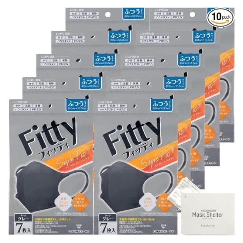 kurahooon 10袋セット フィッティ スタイルフィットプラス 立体 ダークグレー ふつう 7枚入 Fitty kurahooon マスクケース付き