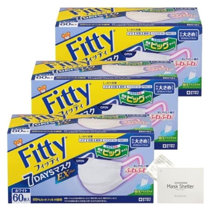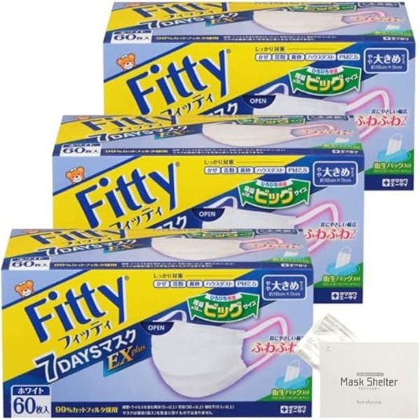 kurahooon 3個セット フィッティ 7DAYSマスク EXプラス 大きめ 60枚入 kurahooon マスクケース付き ホワイト