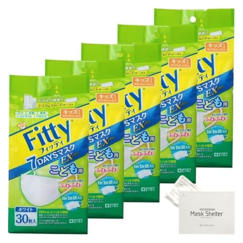 kurahooon 5個セット フィッティ 7DAYSマスク EXプラス こども 30枚入 kurahooon マスクケース付き