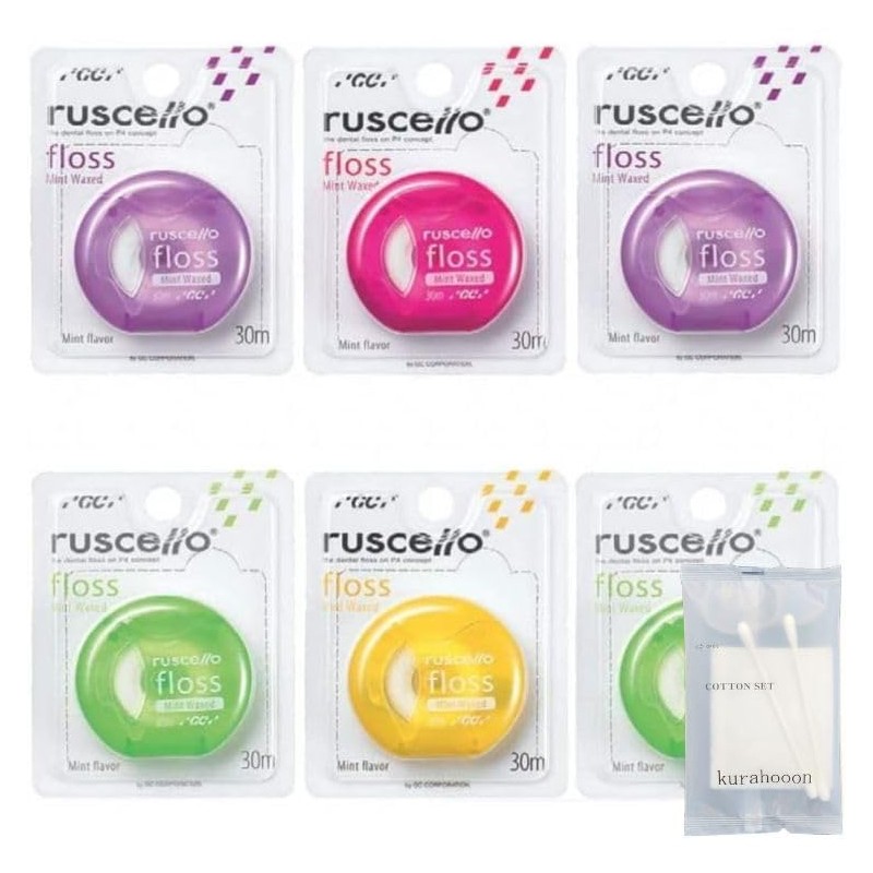 kurahooon 6個セット GC ジーシー フロス ミントワックス 30m アソート kurahooon コットンセット付き