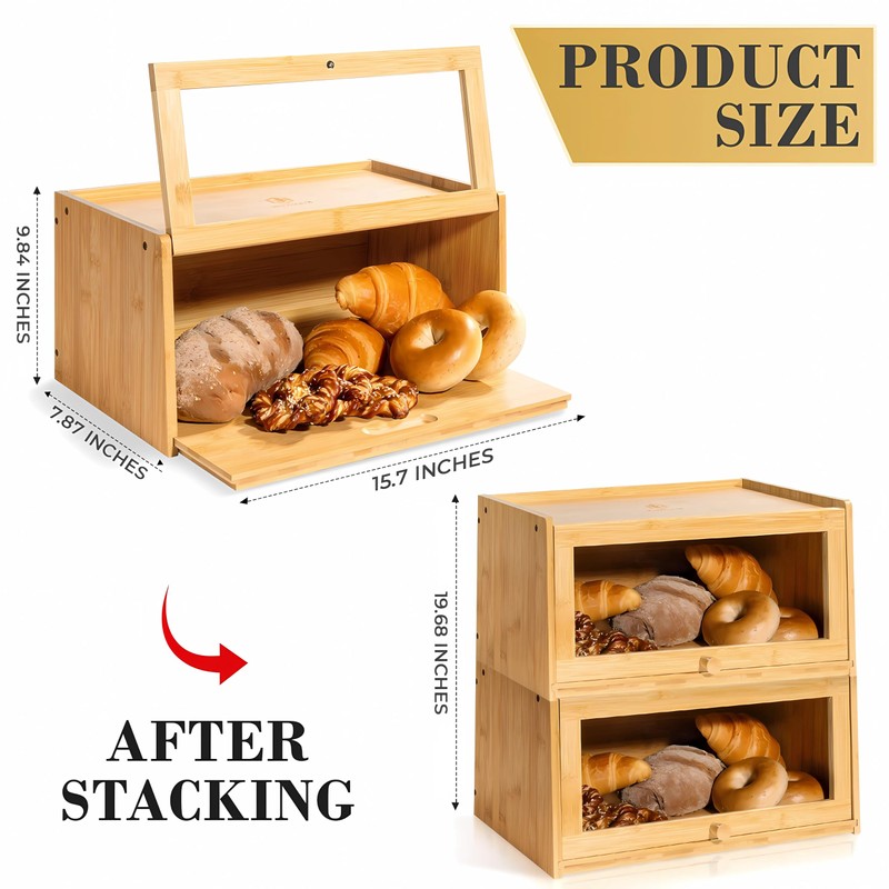 - Large Capacity Bread Storage: Holds up to two large loaves or assorted pastries with overall dimensions of 15.75” x 9.84” x 7.87” perfect for daily kitchen needs.