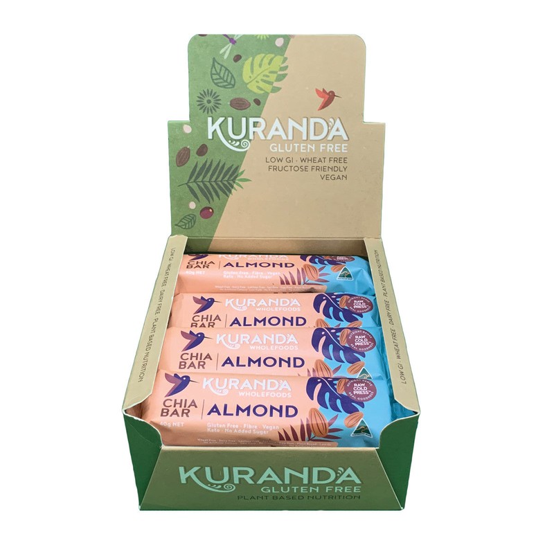 The Kuranda Chia Seed Bars, loaded with Chia Seeds is bound to give you a boost in both your daily energy and nutritional needs. Low in sugars (only 5% per serve), low in carbohydrate, low in fats and naturally high in wholefood plant based Protein. Your Fructose Friendly and Vegan Choice Health Bar.