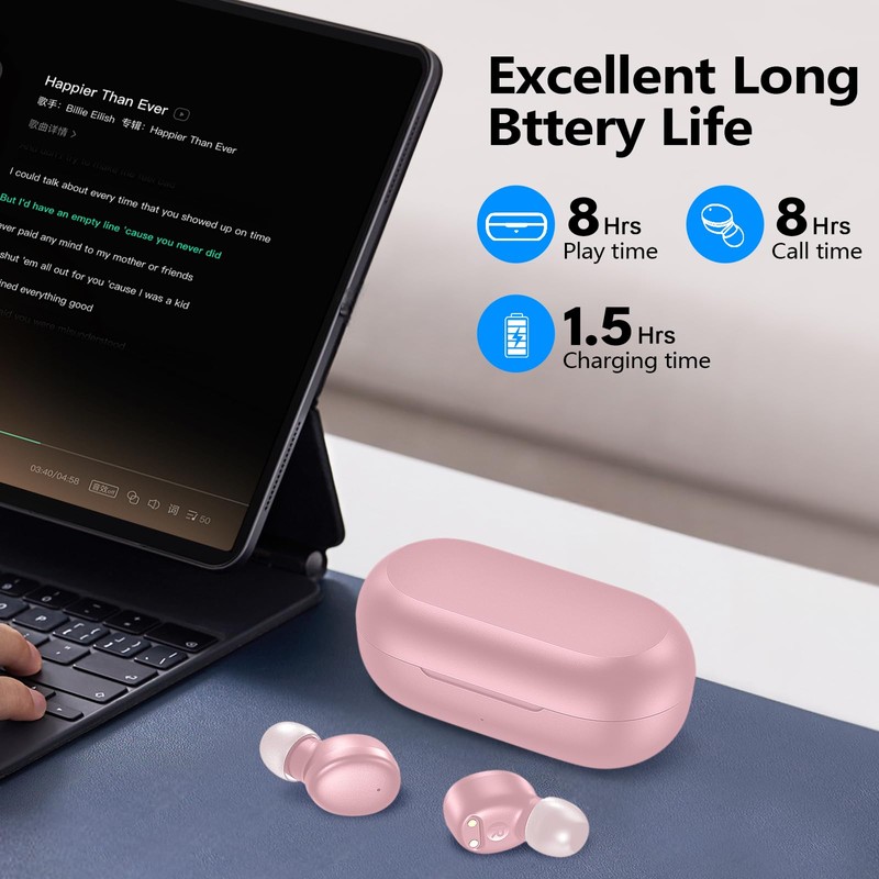 - 【Long Battery Life】The earphones offers you the freedom to indulge in thousands of songs. Single charge lasts 8 hours, and the total playtime with the charging case is 60 hours. It also supports wireless charging, allowing you to conveniently charge them without the need for wires or plugs. Rest assured, we have equipped them with ample power to accompany you on all your adventures!
