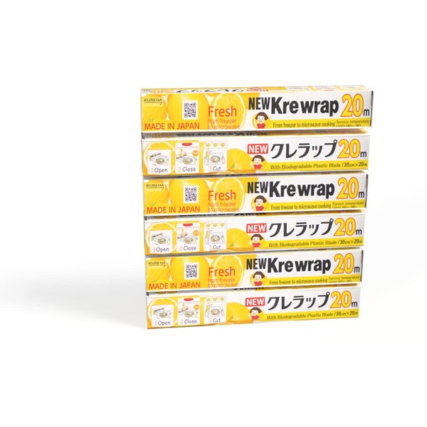 KUREHA Krewrap Plastic Cling Wrap, Pack of 6, 65 sq ft. Per Roll, Clear