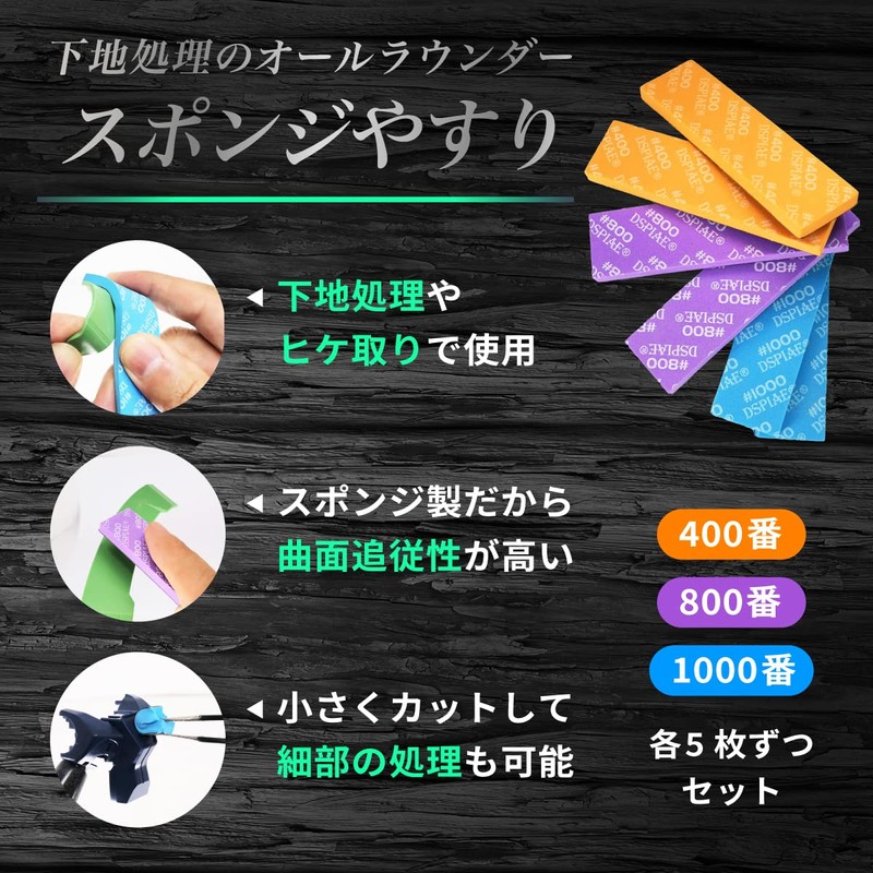 - This set includes all 4 types of sponge file that can be used for gate, substrate treatment, and surface treatment. The set includes a set of numbers 400 to 4000, so you can use it for all finishes, including basic construction, surface finishes, and professional paintings