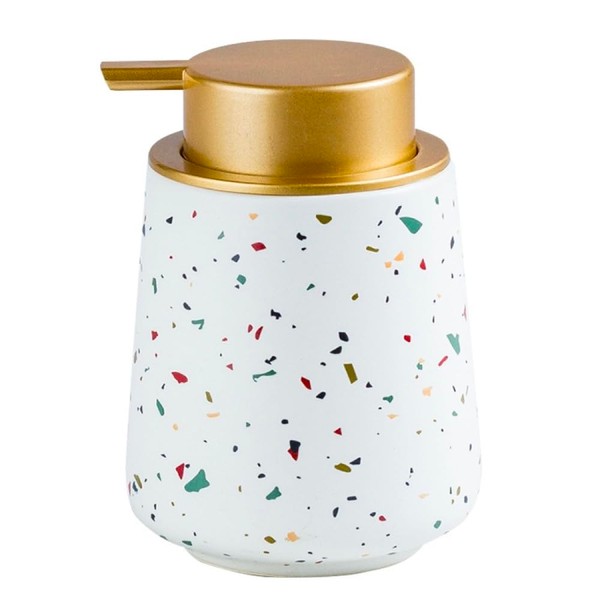 - Material: Bottle: Ceramic, Pump: Plastic, Bottle Circumference: Rubber coating, Luxury porcelain ceramic dispenser. Hygienic material can also be used for cleaning detergents such as dish detergents. The body has a muddy texture and a smooth hand feel for easy cleaning