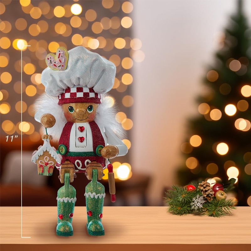 • Compact Charm: The Kurt Adler 11-inch Hollywood Nutcracker Gingerbread Baker Boy Shelf Sitter Nutcracker brings whimsical delight in a conveniently sized shelf-sitter design.